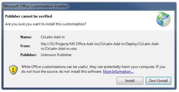 If you wish to disable Cir-Latin Add-in, go to "File/Settings/Add-Ins", select "Manage COM Add-Ins" and uncheck the box for Cir-Latin. This will prevent the add-in to start with your MS Word.