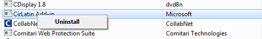 If you wish to completely remove Cir-Latin from your system, use Add or remove programs from your Control Panel and uninstall the add-in: