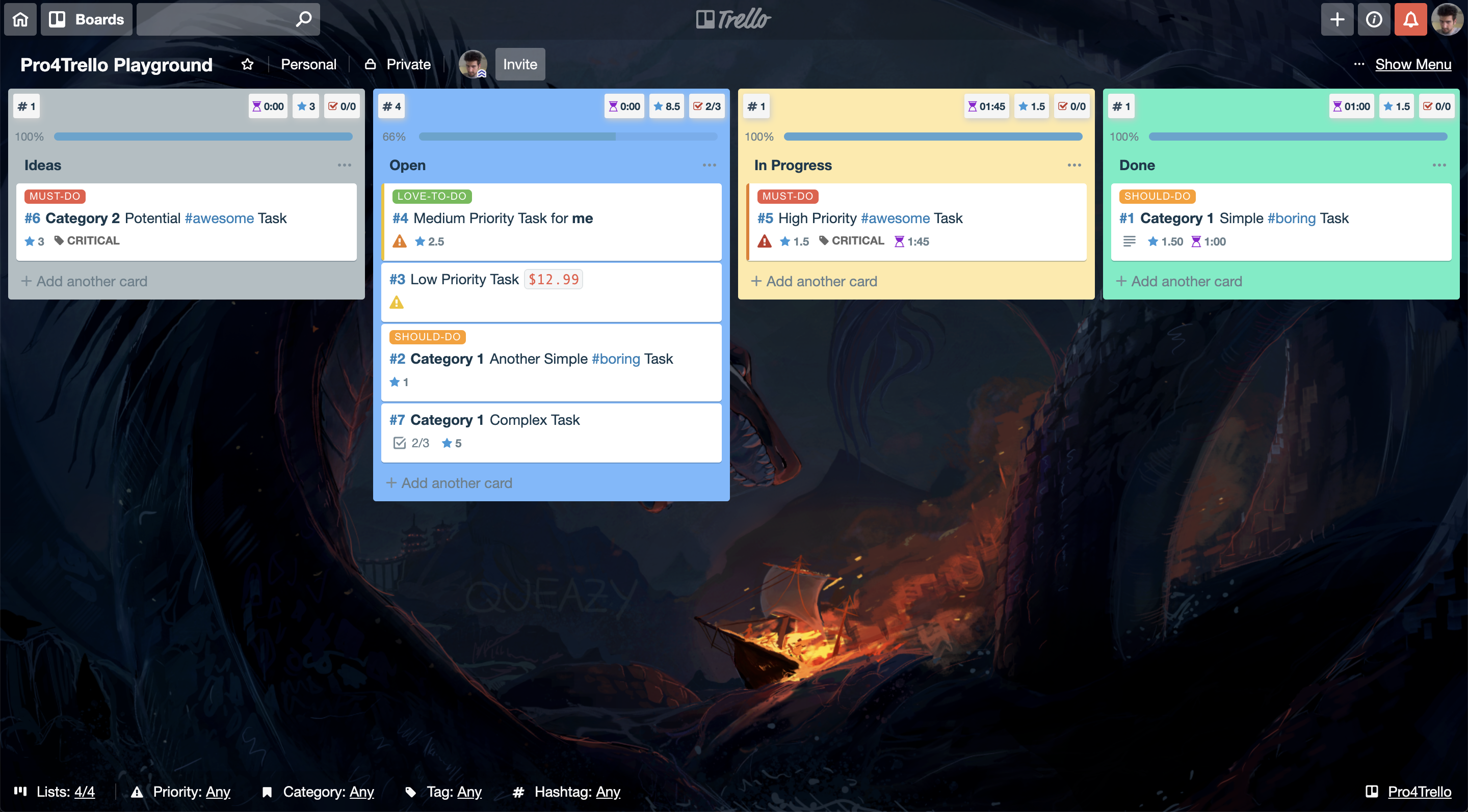 | Priorities | Will make cards that have a level of priority more prominent. Besides no priority cards, you can set "low", "medium" and "high priority". You can filter cards per priority. |